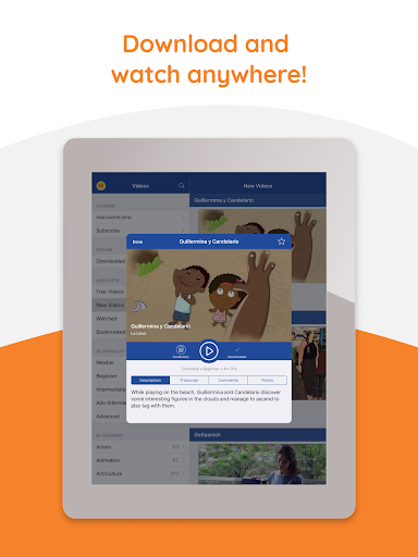 I contenuti popolari includono programmi televisivi, video musicali, interviste, animazione, documentari e video di viaggio. YaBLA è funzionale attraverso i dispositivi. L'abbonamento APP include anche l'accesso al nostro sito web con tutti gli esercizi e giochi linguistici! Usa yabla ovunque tu sia, a casa o in movimento.