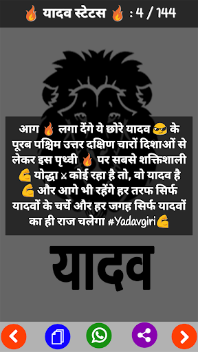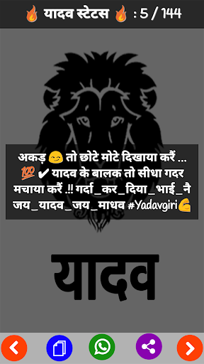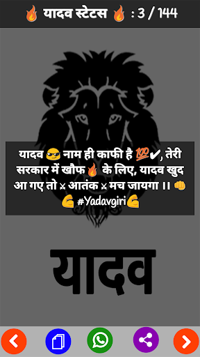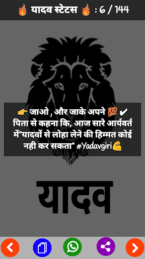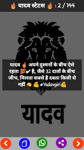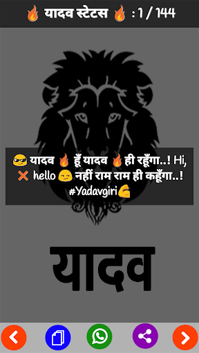 Lo stato di Yadav è il miglior stato nella lingua hindi.Lo stato di Yadav è gratuito e offline non c'è bisogno di connessione internet.Lo stato di Yadav ha uno sfondo bellissimo e facile da usare.