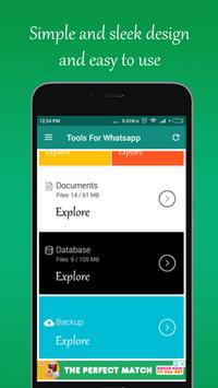 Tools for whatsapp helps user to delete unwanted data with a single click of button which saves user device space make it perform very fast