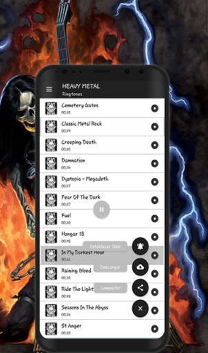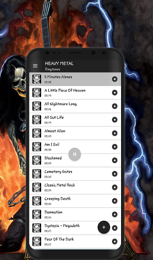 Le migliori suonerie heavy metal, in questa applicazione puoi trovare suonerie heavy metal per telefoni Android, nella playlist suonerie puoi ascoltare i tuoi suoni preferiti, qui troverai i migliori suoni di allarme o vecchi toni di notifica, suoni popolari, questa app è per te perché qui troverai i migliori suoni di musica metallica come: 5 Minutes Alone, A Little Piece Of Heaven, All Nightmare Long, Almost Alien, Am I Evil, Blackened - Metallica, Classic Metal Rock, Creeping Death, Damnation, Fear Of The Dark, tra gli altri.
