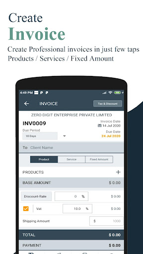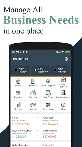 UNI Fattura dell'app offre ogni azienda, un'ottima soluzione per gestire facilmente l'acquisto e la vendita.Il software di Bill Generator e Bill Maker capisce che il tuo tempo è e dà una spinta alla contabilità delle esigenze aziendali.La creazione di una fattura è un lavoro estremamente facile con l'app per la fattura.Devi selezionare il tuo client & amp;prodotti, applicare tasse e amp;Sconti secondo la tua scelta e sì, la tua fattura viene creata.Tenere record di pagamenti effettuati è semplice da comprendere con tre indicazioni non pagate, pagate parziali e pagate.