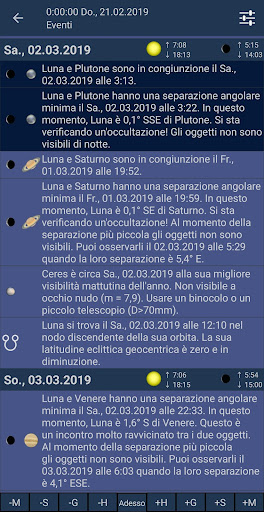 - Notifiche giornaliere degli eventi celesti del giorno