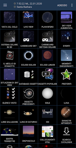 - Visualizzazione a realtà aumentata del cielo utilizzando la fotocamera del dispositivo