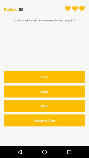 Perguntas aleatórias de biologia irão aparecer no topo de sua tela e logo abaixo suas alternativas. Tente acertar o máximo de perguntas possíveis.