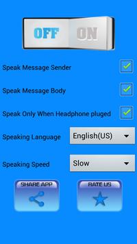 SMS Text Speaker, reads incoming text messages to you. It also announces message sender name..