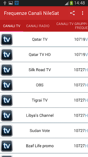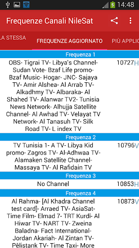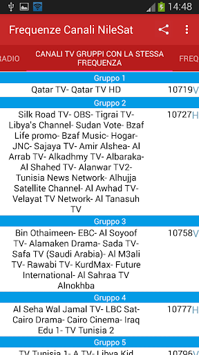 l'applicazione fornisce informazioni dettagliate sulla vecchia e la frequenza degli aggiornamenti 2019 per tutti i canali TV e radio in orbita 7 ° W (Nilesat 102, 201 e Eutelsat 7 West A)