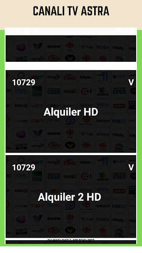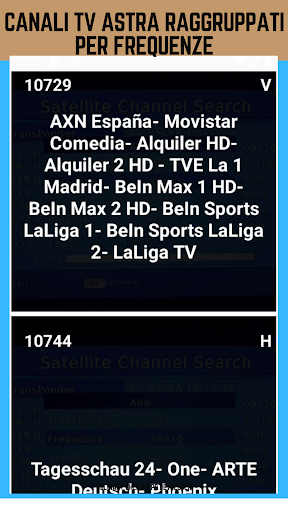 Nell'app Informazioni sui canali TV e radio Astra ci sono diversi canali come: