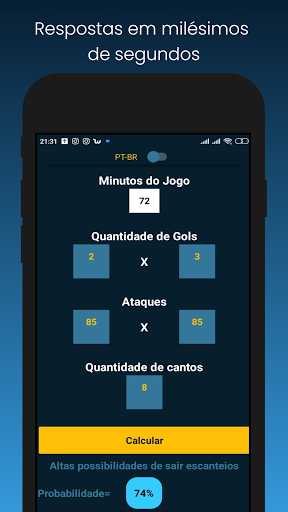 I miei sviluppatori hanno studiato a lungo la probabilità di colpi negli angoli all'interno del calcio e da quello mi hanno creato, Che io sia una logica che mostra semplicemente ed efficacemente la possibilità di andarsene angolo.La mia principale intenzione è di fornire valori quasi accurati a te.
