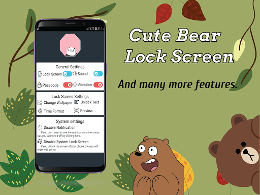 • Sfondo di blocco schermo orso completamente offline carino. Nessuna connessione Internet richiesta.
