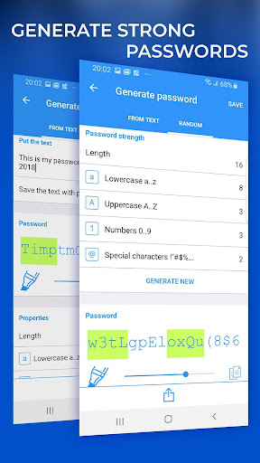 * I dati crittografati (AES 256, RSA 2048) è memorizzato solo nel tuo cellulare . Né noi gli sviluppatori possiamo leggerlo.