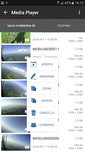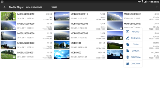 mostra tutte le foto e i video registrati. Potete ora guardare i video senza computer. Potete facilmente copiare sul telefono o sul tablet immagini e filmati e risparmiare spazio sulla scheda micro SD.