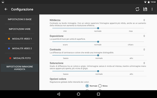 App creata per gestire facilmente le impostazioni della videocamera. Permette di vedere esattamente l'inquadratura in modo tale da posizionare la videocamera.E' possibile visualizzare quello che si é registrato.