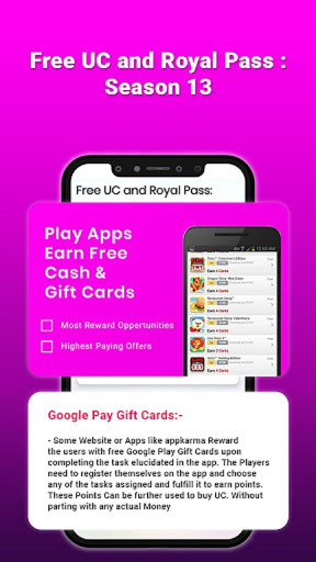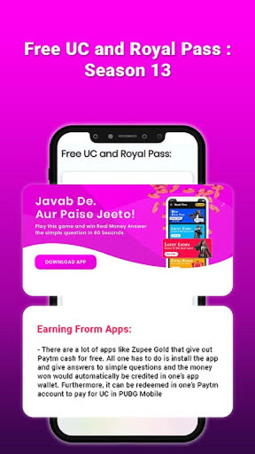 In questa app, offre gratuitamente U.C su base giornaliera e Royal Pass per la stagione 14, quindi se vuoi ottenere gratuitamente denaro sconosciuto o battaglia in contanti, allora dovresti provare questa utile app.Questa app offre anche molti modi genuini per guadagnare UC gratuiti e GRATUITO Royal Pass.