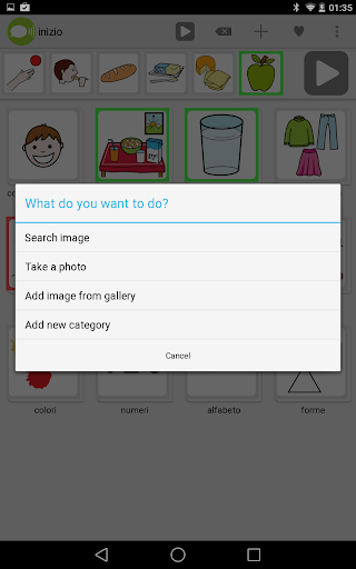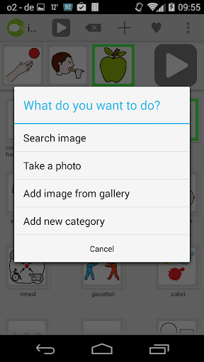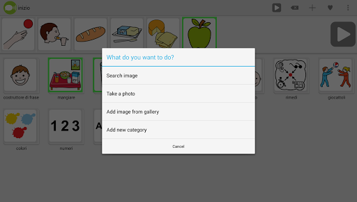 Il database comprende più di 9000 immagini, di facile comprensione dell' ARASAAC (http://arasaac.org). Inoltre si possono aggiungere all'applicazione ulteriori immagini oppure scattare delle fotografie con la propria fotocamera.