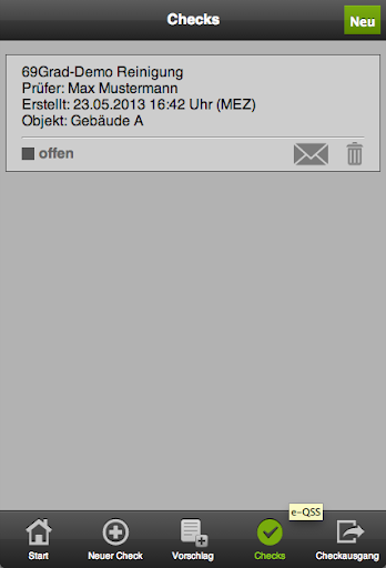 mobil. Die Auswertungen Ihrer Checklisten-basierten Prüfungen rufen Sie über das WebPortal jederzeit von jedem Ort aus ab! Nutzen Sie das Fach-Knowhow rund um das Qualitätsmanagement und die Qualitätssicherung von infrastrukturellen Service-Dienstleistungen des Ausschreibungsspezialisten Neumann & Neumann. Optimieren Sie Ihr Qualitätsmanagement innerhalb kurzer Zeit mit elektronischen Checklisten und mobilen Prüfungen vor Ort zum überschaubaren Aufwand!