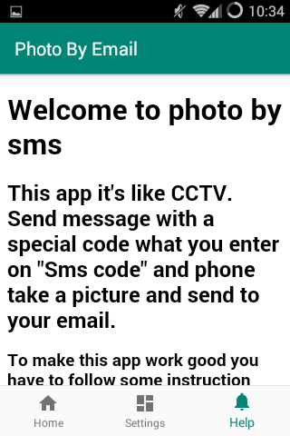 So i build this app what i used by my self for about 5 months, and hey it just fantastitc. No more calls no more disturbing no more boring staff just what i need send an sms and i get picture to my email is that great??? So i decide to share with you, instant to worry why you just don't try and you could continue your sleep without worry.