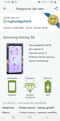 Dopo il nostro test riceverai un rapporto molto dettagliato che include i risultati e anche le specifiche tecniche del tuo telefono. Il test viene memorizzato sul nostro server e non può essere falsificato. Puoi condividere il link al rapporto con chiunque possa essere interessato ad acquistare il tuo telefono. Risulta molto più affidabile vendere privatamente un telefono quando si può garantire il suo funzionamento - e potresti anche venderlo a di più!