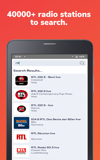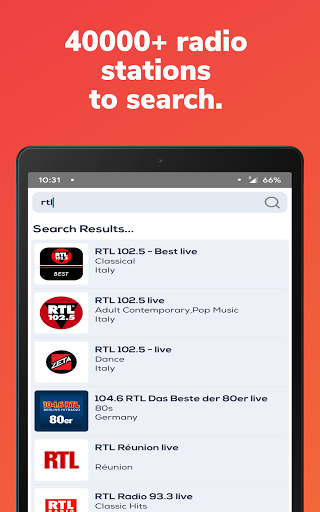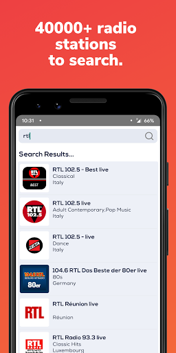 📻 Cerca tra oltre 40000 stazioni dal vivo con una funzione di ricerca ricca di funzionalità che rende più facile trovare la tua stazione preferita all'interno dell'app.