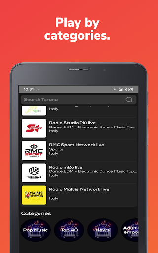 L'app Tarana Radio Italia è un sintonizzatore radio online gratuito in cui puoi ascoltare più di 40000 stazioni radio da tutto il mondo direttamente sul tuo dispositivo mobile. Segui la tua musica preferita, radio, notizie radio, radio sportive, radio commedia, radio spirituale su Tarana Radio internet gratuita App Radio FM italiana tutte le stazioni. Una bellissima interfaccia utente.