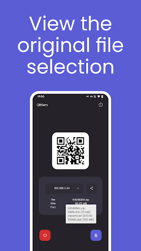 QRSERV prende qualsiasi file selezionato sul dispositivo e li rende disponibili tramite il proprio server HTTP con un numero di porta inutilizzato.I file selezionati possono quindi essere scaricati tramite browser Web su un altro dispositivo e/o software che consente i download di file su HTTP dai codici QR.