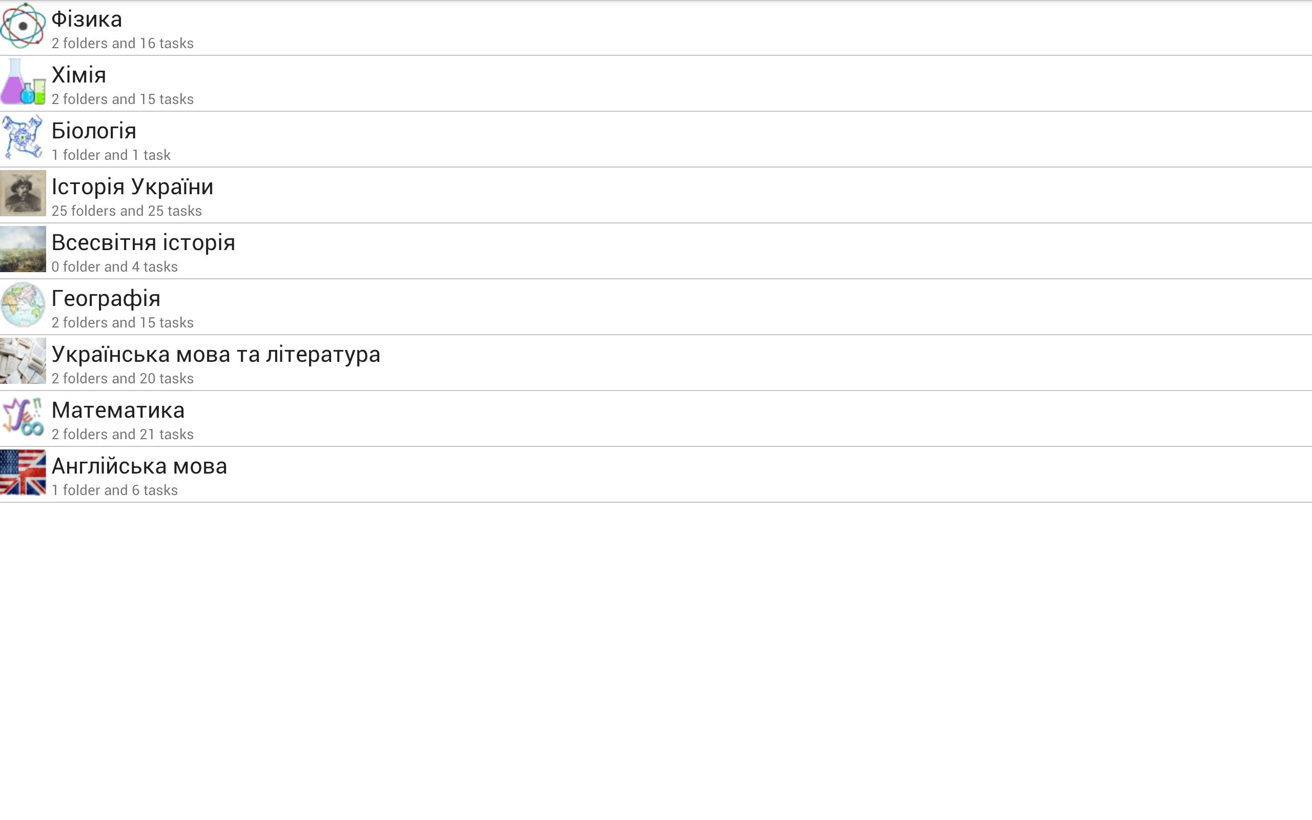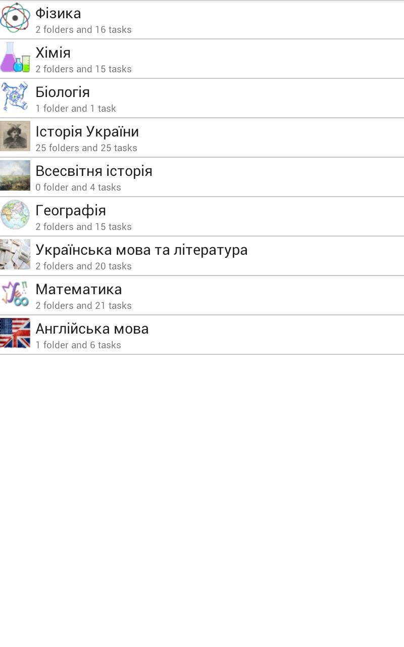 Доступні завдання по наступним предметам: