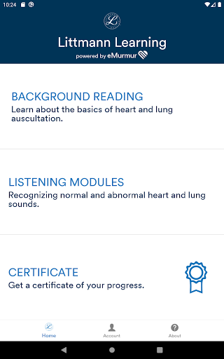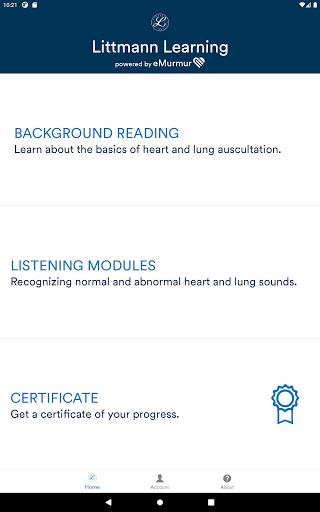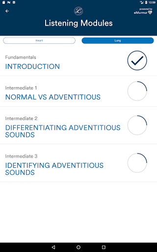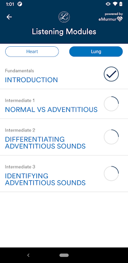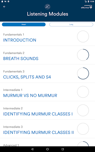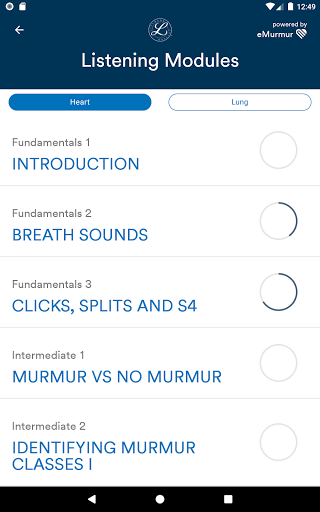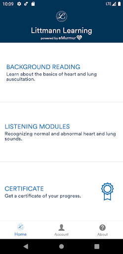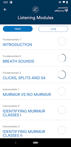 Littmann Learning - Powered By Emurmur - è l'app per l'educazione all'auscultazione.Ora educatori e studenti possono avere accesso a suoni cardiaci, suoni polmonari, moduli di apprendimento e altro - ovunque, in qualsiasi momento.L'app offre agli utenti l'accesso al vero cuore del paziente e suoni polmonari.