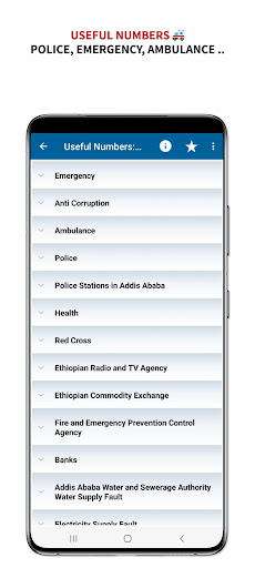 * Utili numeri etiopi come polizia, banche, stazioni dei pompieri ...