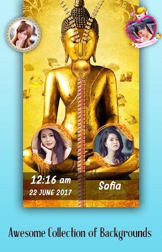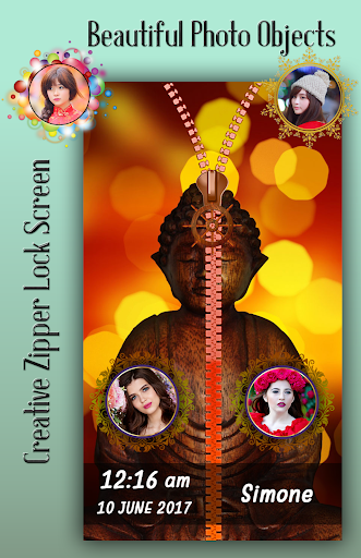 buddha is made and used as a decoration. buddha shines by reflection with many small flashes of brilliant light or to shine with strong emotion to be brilliantly attractive. It is a free zipper lock app for your quality android device. If you love the buddha shine, then you surely want to decorate your home screen with buddha zipper Lock Screen. Young girls and guys will really like it.