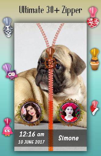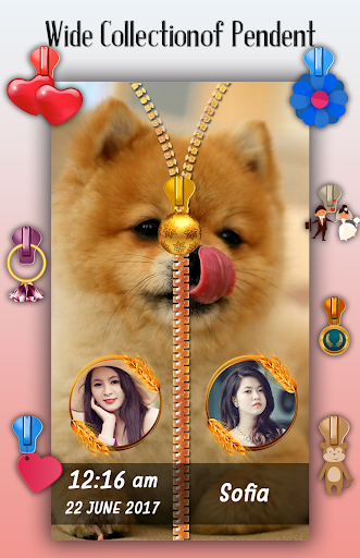 Best part of zipper lock screen is you can set couple photo on lock screen with awesome and creative objets. Even write your name on zipper lock screen. you can use it as couple zipper lock screen