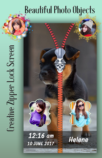 Puppy is made and used as a decoration. Puppy shines by reflection with many small flashes of brilliant light or to shine with strong emotion to be brilliantly attractive. It is a free zipper lock app for your quality android device. If you love the Puppy shine, then you surely want to decorate your home screen with Puppy zipper Lock Screen. Young girls and guys will really like it.