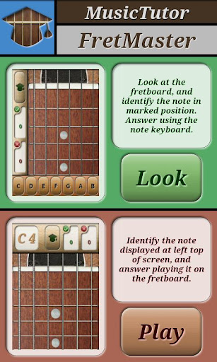 Impara le note sulla tua chitarra! Musictutor FretMaster è progettato per aiutarti a imparare la corrispondenza tra note e posizioni nella tastiera.