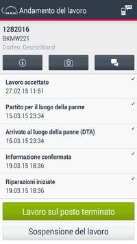 Questa applicazione richiede un login autorizzato da MAN. La Mobile24 app semplifica la comunicazione tra meccanici e il Call Center. I meccanici possono visionare direttamente tutti i dati dell'ordine senza dovere ritornare in officina. L'app mostra tutte le informazioni importanti in modo chiaro e conduce automaticamente il meccanico al luogo di fermo per avaria. I messaggi standardizzati per trasmettere lo stato attuale riducono e semplificano i passi del processo. Inoltre è possibile fare fotografie e inviarle, specificatamente per ogni caso, al software di fermo veicolo per avaria.