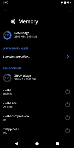 Regola Zram, KSM, LowMemoryKiller e Impostazioni di memoria virtuale