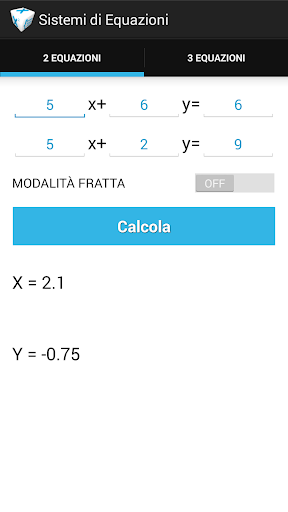 - 3 schermate con tre tipi di equazioni, 2 schermate con due tipi di sistemi.