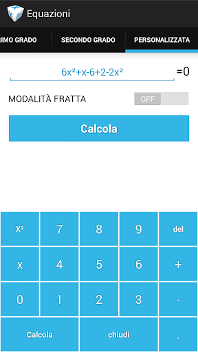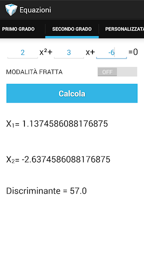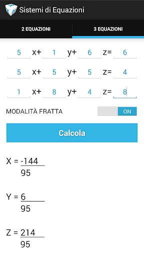 Questa applicazione ti permette di svolgere equazioni(di primo e secondo grado) e sistemi(di due o tre equazioni) in modo veloce.