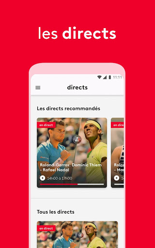 I più grandi appuntamenti sportivi disponibili Video in diretta e replay: 🎾 Roland-Garros, 🚴♂️ The Tour de France, 🏋️ The Olympic Estate e Inverno Giochi, 🏁 Dakar, 🏉 Il torneo di 6 nazioni e molti altri!