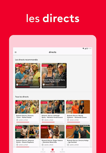 Guarda Roland-Garros con la trasmissione diretta contemporaneamente per niente da perdere tutto da ciascuno Brevi e i risultati di ogni partita. Parla anche dell'Australian Open, il torneo di Wimbledon, il torneo americano aperto, ATP e WTA.