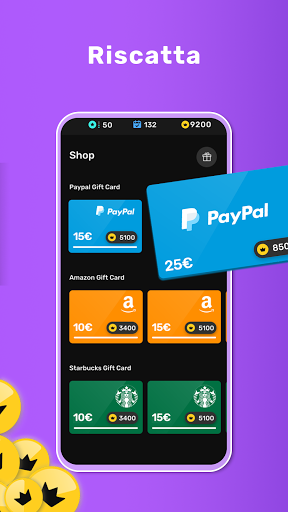 Incassa tramite il tuo conto PayPal oppure ricevi buoni regalo, voucher e coupon per Amazon, Google Play, Uber, Nike, Starbucks e tanti altri.