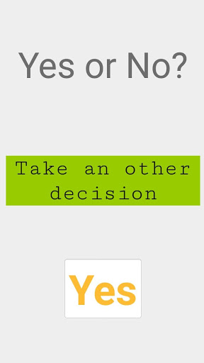 Have you ever wonder how a second opinion would be like? Don't worry, the solution is here. Are you trying to take a decision? Tap the button! Are you trying to choose between short or long? Tap the button! Give your self an answer for all your problems. This app will help you fight the moment of choosing, let the app choose for you. Our aim is reducing stress and wrong decisions. (Do not use the app too much, important decisions should be taken by your own. "Take a decision" app do not give real answers).