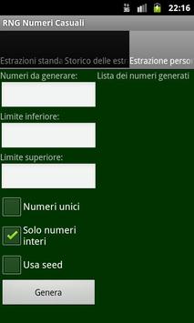 Questo programma è un generatore di numeri casuali completo: permette di effettuare estrazioni predefinite, come il lancio dei dadi (4, 6, 8, 10, 12, 20, 100 facce) e la tombola. Permette inoltre di effettuare estrazioni personalizzate, in cui può essere specificato ogni singolo parametro.