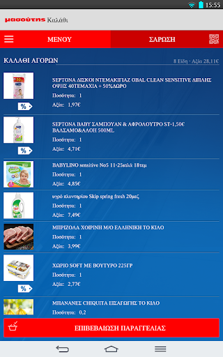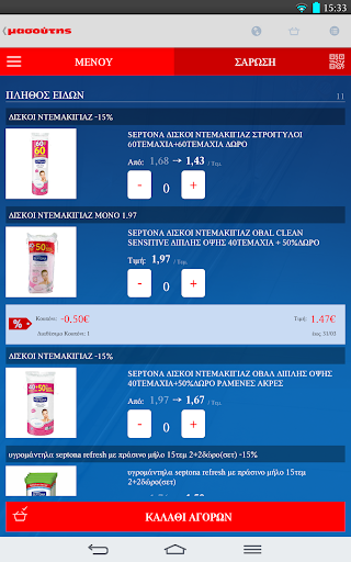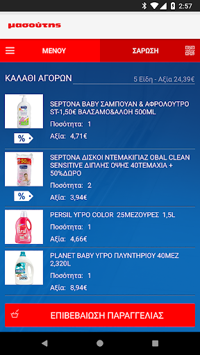 • Συγχρονισμός καλαθιού με το eshop Masoutis.