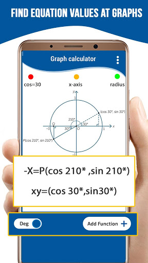 è un risolutore di matematica avanzato che disegna multi grafici alla volta. È un'applicazione facile da dare qualsiasi equazione di tipo come input per disegnare il suo grafico. Questo grafico calcolatore è un calcolatore grafico integrato con calcolatrice scientifica avanzata ed è uno strumento di risoluzione matematica facile per tutte le persone ingegneristiche, matematica e fisica. Ora non è necessario trasportare calcolatori grafici duri in quanto fornisce tutti i servizi per risolvere e disegnare equazioni. Puoi disegnare facilmente funzioni e equazioni grafiche facilmente, trovare punti speciali di funzioni. Questo grafico Calc è per tutti e progettato tanto semplice che chiunque può usare. Funzioni di trama, curve polari e parametriche e tutti gli altri compiti difficili e goditi fantastiche trasformazioni di esperienza di equazioni e funzioni nel grafico.