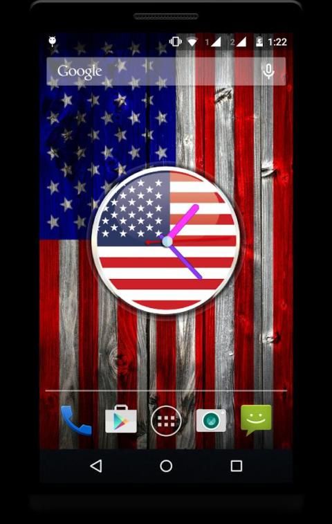 This is gorgeous live wallpaper with USA flag theme style analog clock