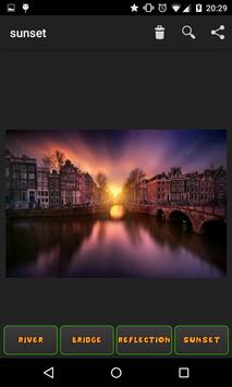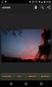 This is app is developed based on the Clarifai API. Clarifai is an advanced image recognization algorithm based on Brain's structure. It automatically recognize your image and create tags. The number of API access is limited. To know more about Clarifai, please visit