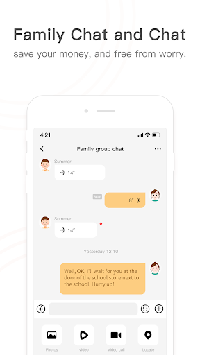 I messaggi vocali possono essere inviati tra l'orologio e l'app, realizzando una nuova forma di comunicazione tra bambini e genitori.Inoltre, l'app può inviare messaggi di testo SMS all'orologio per una maggiore diversità di comunicazione.