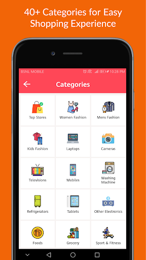 Other categories in our all in one shopping app are: Kids Fashion, Laptops, Cameras, Televisions, Mobiles, Washing Machines, Refrigerators, Tablets, Electronics, Foods, Grocery, Sports, Health & Medicines, Ayurveda, Hotels, Buses & Trains, Recharge, Bank & Finance, Movie Booking, Women care, Men care, Baby care, Kitchen, Gifts & Flowers, Books, Education, Domains & Hosting, Jobs, News, all in one social, Deals, and many others.