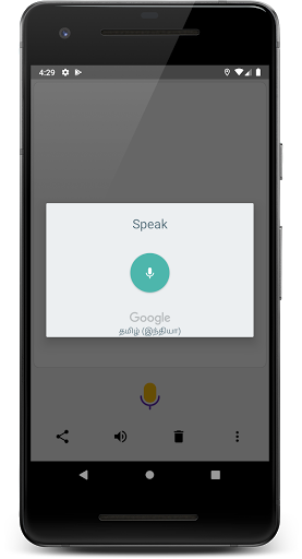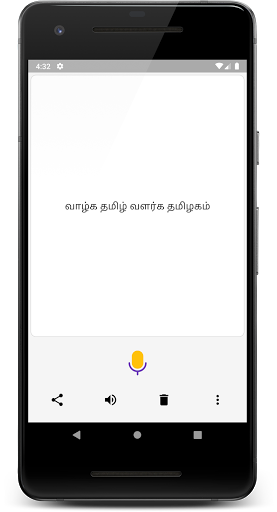 Caratteristiche: clicca sul pulsante del pulsante Mike per parlare in Tamil. Ti darà immediatamente il testo Tamil.