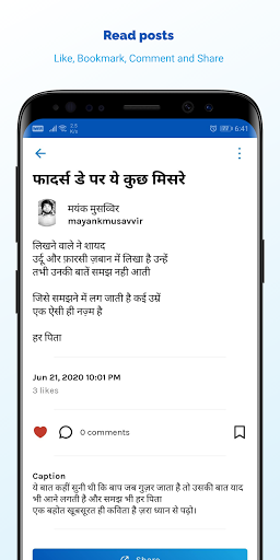 4. Like, Share, Comment and Bookmark posts
