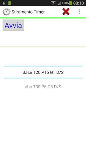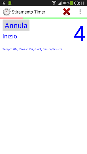 Timer di base utile per esercizi di stretching. Il timer mostra il tempo e riproduce un suono quando partire, finitura e tra giri. Inizio e fine avere un suono diverso.