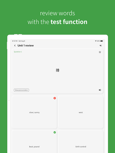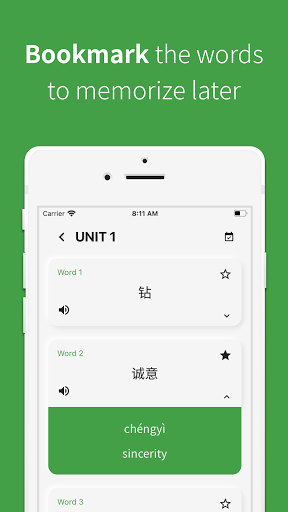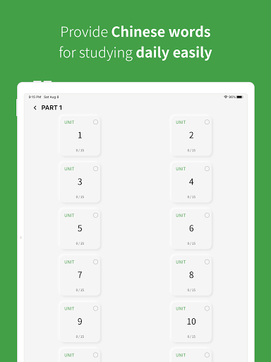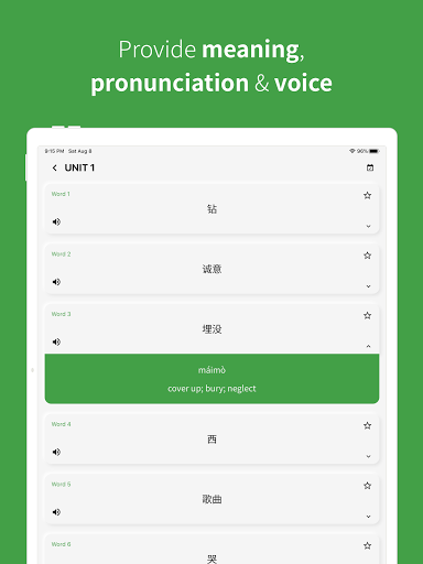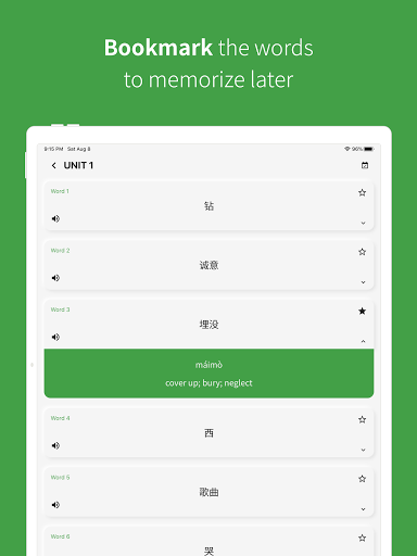 È importanteStudia parole ogni giorno!Puoi rivedere il vocabolario cinese studiato per parte, unità o parole intere.